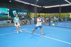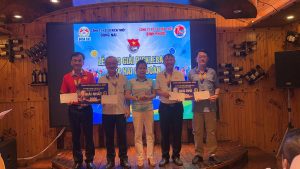 Hình thi đấu giữa Ông Mai Thanh Bình – Ông Đinh Việt Tiến thi đấu cùng lãnh đạo ngân hàng